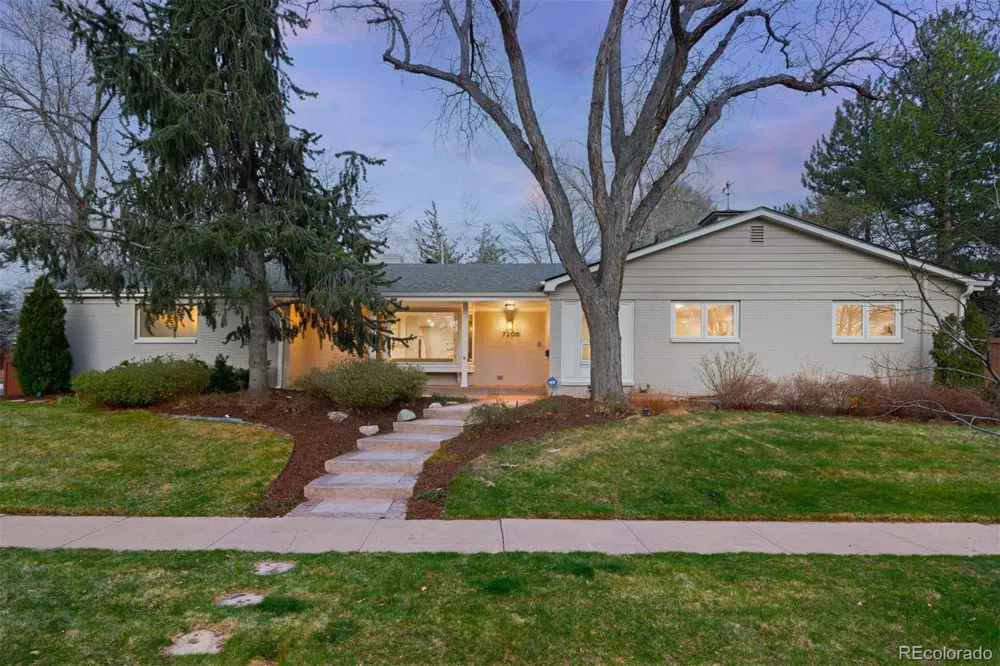This beautifully designed Southern Hills home sits on an expansive 13,500 sq ft corner lot and is thoughtfully oriented to maximize sunlight and connection to the outdoors. With entry points from the kitchen, mudroom, and a sun-drenched side seating area, the home revolves around the lush backyard. An open floorplan invites you in with a generously sized living room, anchored by a cozy double-sided fireplace shared with the formal dining area. The heart of the home is the thoughtfully appointed kitchen, featuring an oversized island with built-in wine storage and seating for four. Strategically placed skylights flood the space with natural light, including the bright mudroom/office, offering a private and functional space with direct access to the outdoors. A bonus sunroom offers a tranquil transition to the backyard and a private entry into the serene primary suite. The spacious primary features a stunning wall of south-facing windows and a spacious five-piece en suite bath flooded in sunlight from the skylights above, which offers a custom soaking tub, and walk-in shower. Three more main floor bedrooms—one with an en suite bath—and walk-in closets complete the ideal, functional layout upstairs. The fully finished basement features a generous recreation room perfect for movie nights or game days. A conforming bedroom with a nearby three-quarter bath provides ideal accommodations for guests. Outside, the custom-stamped concrete patio, built-in firepit, low-maintenance hot tub, and sun-filled garden beds create an inviting extension of the home. Mature trees and landscaping offer privacy, while the covered front porch and grand stairway entrance deliver standout curb appeal. An attached two-car garage is discreetly located on the opposite side of the lot. Positioned just one block from the highly regarded Slavens K-8 and with effortless access to I-25, this expansive corner lot delivers the perfect blend of space, convenience, and premier location.