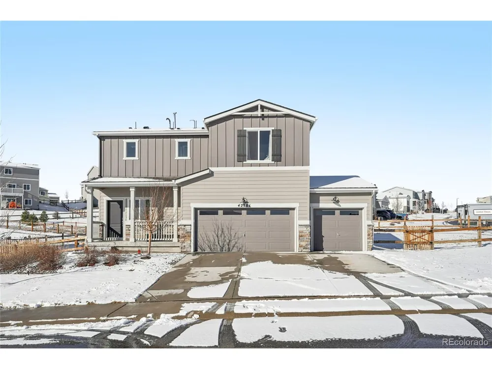Welcome to this beautiful home in the peaceful Spring Valley Ranch community of Elizabeth, perfectly situated on a spacious corner lot with thoughtful upgrades and exceptional value. A covered front porch creates a warm welcome as you step into the open main level, where the living, dining, and kitchen areas flow seamlessly-ideal for both everyday living and entertaining. Sliding glass doors off the dining area open to the backyard patio, extending your living space outdoors. The kitchen is well appointed with granite countertops, stainless steel appliances, a large island with breakfast bar, and a walk-in pantry. A convenient half bath and access to the attached three-car garage complete the main level. Upstairs, a versatile bonus/flex space at the top of the stairs offers the perfect spot for a media room, playroom, or home office. The primary bedroom suite features a private 3/4 en-suite bath and a walk-in closet, while two additional bedrooms, a full bathroom, and an upstairs laundry room provide comfort and convenience. Outside, enjoy a beautifully improved backyard with approximately $11,000 in landscaping, including fencing, grass, and mulch-ready to enjoy from day one. The large corner lot offers added space and privacy, making it ideal for relaxing, entertaining, or play. Located just half a mile from Spring Valley Golf Club, this home offers a tranquil, small-town setting while still providing easy access to recreation and everyday amenities. As an added bonus, the FHA loan is assumable at an attractive 4.125% interest rate with an approximate loan balance of $467,139-an incredible opportunity in today's market. This is peaceful Colorado living at its best.