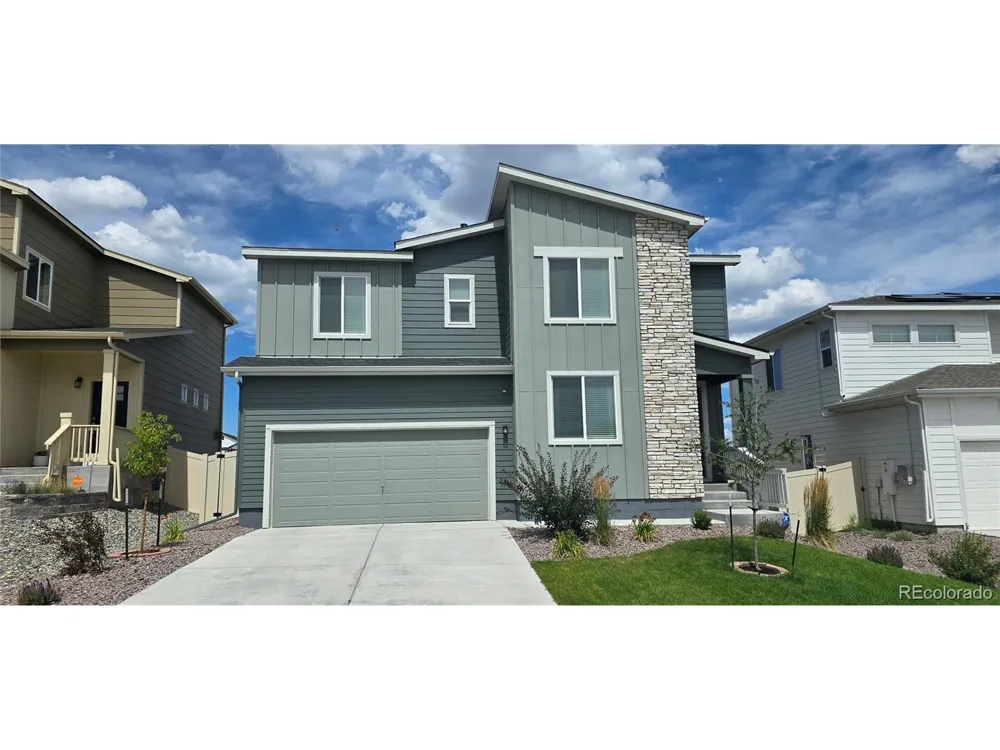 Welcome to a beautifully crafted two-story home nestled in the sought-after Stonebridge at Meridian Ranch community. Built in 2022, this 5-bedroom, 3-bath residence offers nearly 2,300 square feet of thoughtfully designed living space. Step inside to find an inviting open-concept layout filled with natural light, where the modern kitchen-complete with stainless steel appliances and ample counter space-flows seamlessly into the spacious living and dining areas. Upstairs, the private primary suite provides a serene retreat, complemented by generously sized secondary bedrooms for family, guests, or a home office. Outside, the extended patio and fenced backyard create the perfect setting for entertaining or relaxing under Colorado's wide-open skies. Beyond your doorstep, enjoy access to Stonebridge Lodge and the Meridian Ranch Recreation Center, featuring indoor and outdoor pools, a lazy river, fitness facilities, sports courts, and more. Blending comfort, style, and community amenities, this move-in ready home offers the ideal balance of everyday convenience and resort-style living.