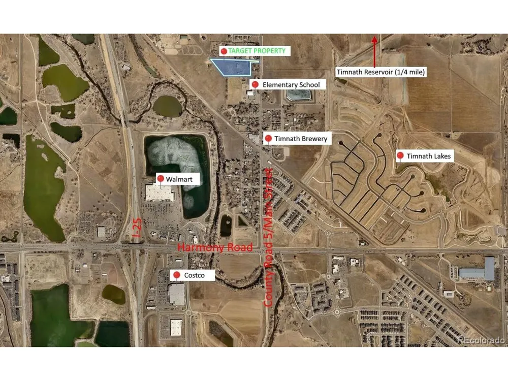 5.5+ acres located in the heart of Old Town Timnath, yet outside city limits in the county. Expansive and breathtaking views of the Colorado Front Range, Longs Peak, and Horsetooth Rock. Walk to elementary school, walk to Timnath Brewery, walk to Timnath Lakes, minutes to Timnath Reservoir, Walmart, Costco, and all of the Timnath conveniences. Easy access to I-25. Prime development opportunity in Northern Colorado as medium-density residential (single family, townhome, duplex, triplex). Potential for primary feeder street as well as secondary emergency access. Flat land, easy development. Good soil report. Adjudicated well (50 GPM) conveys with the property. Neighboring property possible addition (3.5 acres) for a total of 9+ acres. Broker has an ownership interest in the property.