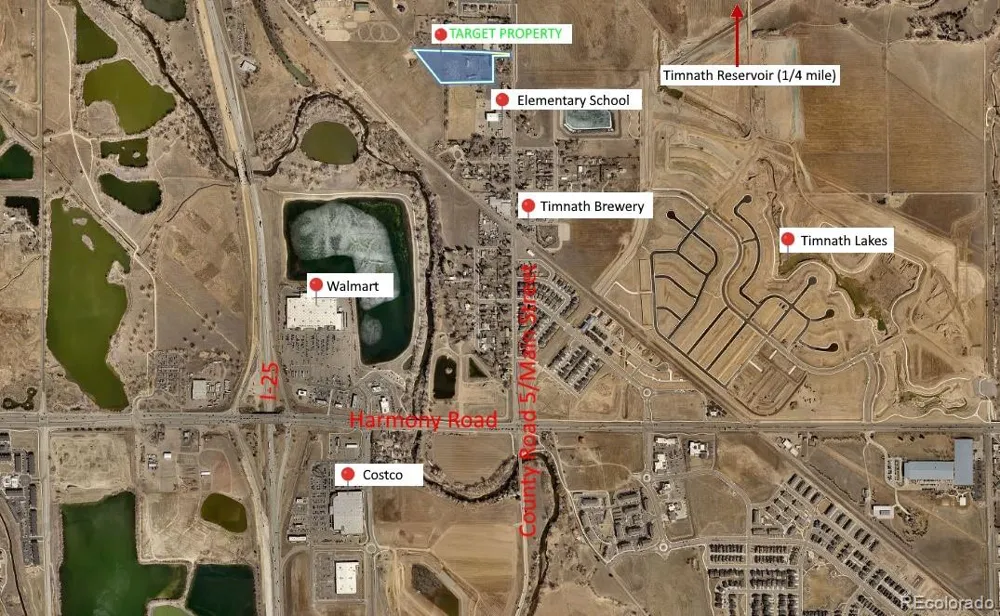 5.5+ acres located in the heart of Old Town Timnath, yet outside city limits in the county. Expansive and breathtaking views of the Colorado Front Range, Longs Peak, and Horsetooth Rock. Walk to elementary school, walk to Timnath Brewery, walk to Timnath Lakes, minutes to Timnath Reservoir, Walmart, Costco, and all of the Timnath conveniences. Easy access to I-25. Prime development opportunity in Northern Colorado as medium-density residential (single family, townhome, duplex, triplex). Potential for primary feeder street as well as secondary emergency access. Flat land, easy development. Good soil report. Adjudicated well (50 GPM) conveys with the property. Neighboring property possible addition (3.5 acres) for a total of 9+ acres. Broker has an ownership interest in the property.